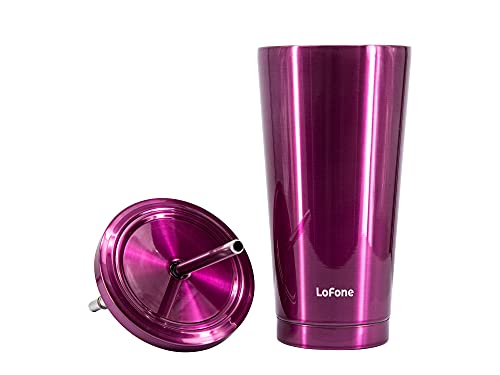 Specification: Koffiekopjes van 500 ml met deksel en rietje, reisbeker, vacuüm geïsoleerde drinkbekers voor in de auto (paars)