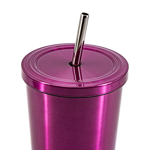 Koffiekopjes van 500 ml met deksel en rietje, reisbeker, vacuüm geïsoleerde drinkbekers voor in de auto (paars)