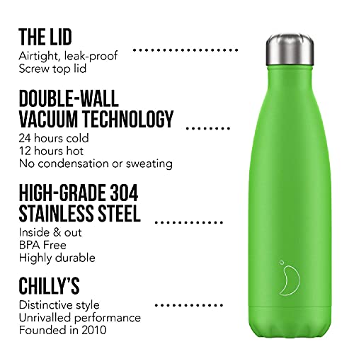 Specification: Chilly’s Bottles | Lekvrij, beslaat niet| BPA-vrij roestvrij staal | Herbruikbare waterfles | Dubbelwandig vacuüm…