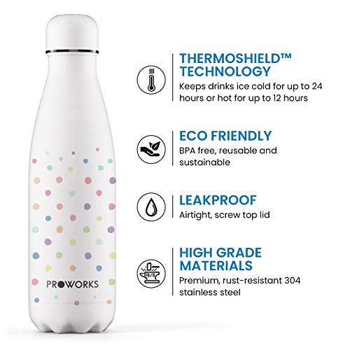Specification: Proworks RVS Sport Waterfles | Dubbel Geïsoleerde Thermosfles voor 12 Uur Warme en 24 Uur Koude Drankjes – ideaal voor…
