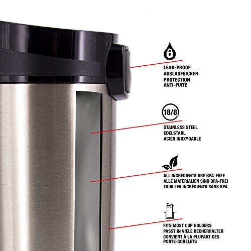 Robust material: Thanks to the production of high-quality 18/8 stainless steel, the double-walled insulated coffee mug is robust, odorless and recyclable.