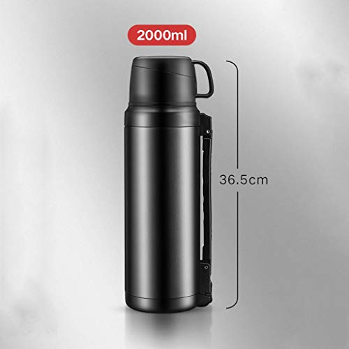 Thermische Karaffen, 200 0ML Vacuüm geïsoleerde drankfles met handvat, dubbel roestvrij staal (zwart)